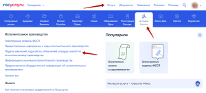 Чтобы подать ходатайство, перейдите в «Услуги» → «Штрафы, налоги» → «Подача заявлений, ходатайств, объяснений, отводов, жалоб по исполнительному производству». Затем заполните форму ходатайства онлайн.