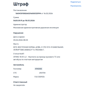 По каждому штрафу сервис создает карточку, в которой отображаются данные: