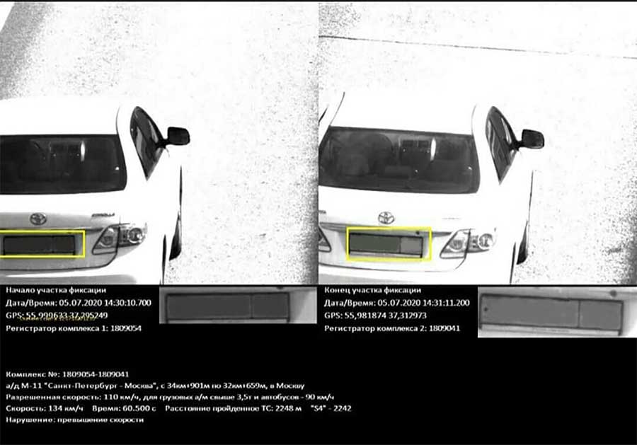 Средняя скорость измеряется так: на дороге устанавливают две камеры, одна измеряет скорость авто в момент въезда на участок, другая — в момент выезда с него.